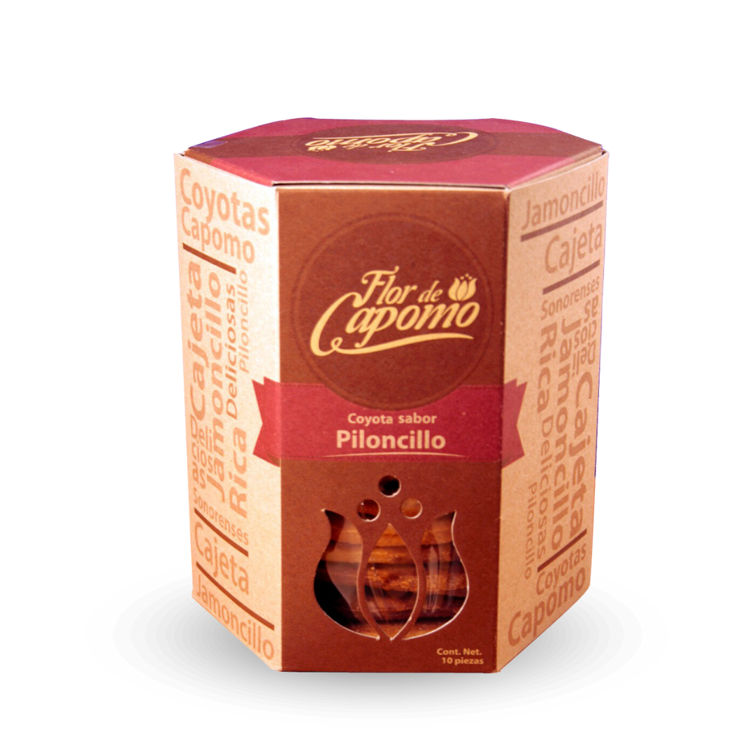 • Postre tradicional Sonorense horneado suave con relleno de piloncilo, ligeramente espolvoreadas de azúcar en su presentación con 10 pzs en caja.